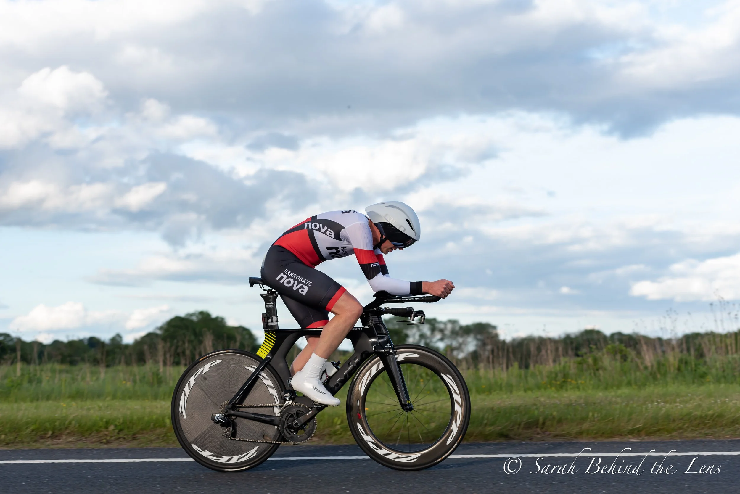 The weather was drizzly, around 20 degrees Celsius with a light breeze coming from the north. 9 riders from Harrogate Nova and Moonglu set off at 1-minute intervals. The first 3 riders were all very close with Roger Bromiley fastest rider in a time of 42:10 on a time trial bike. Next fastest rider was Rob Senior on a road bike in 42:31. In third position was Aidan Adams in 42:47 on a road bike. Liam Evans was 4th in 44:12, Paul Coyle was 5th in 45:57, Walter Busutill 6th in 46:46, Dave Ellis 7th in 47:29, Phil Mason 8th in 50:13, followed by Walter Wilkinson in 50:43.